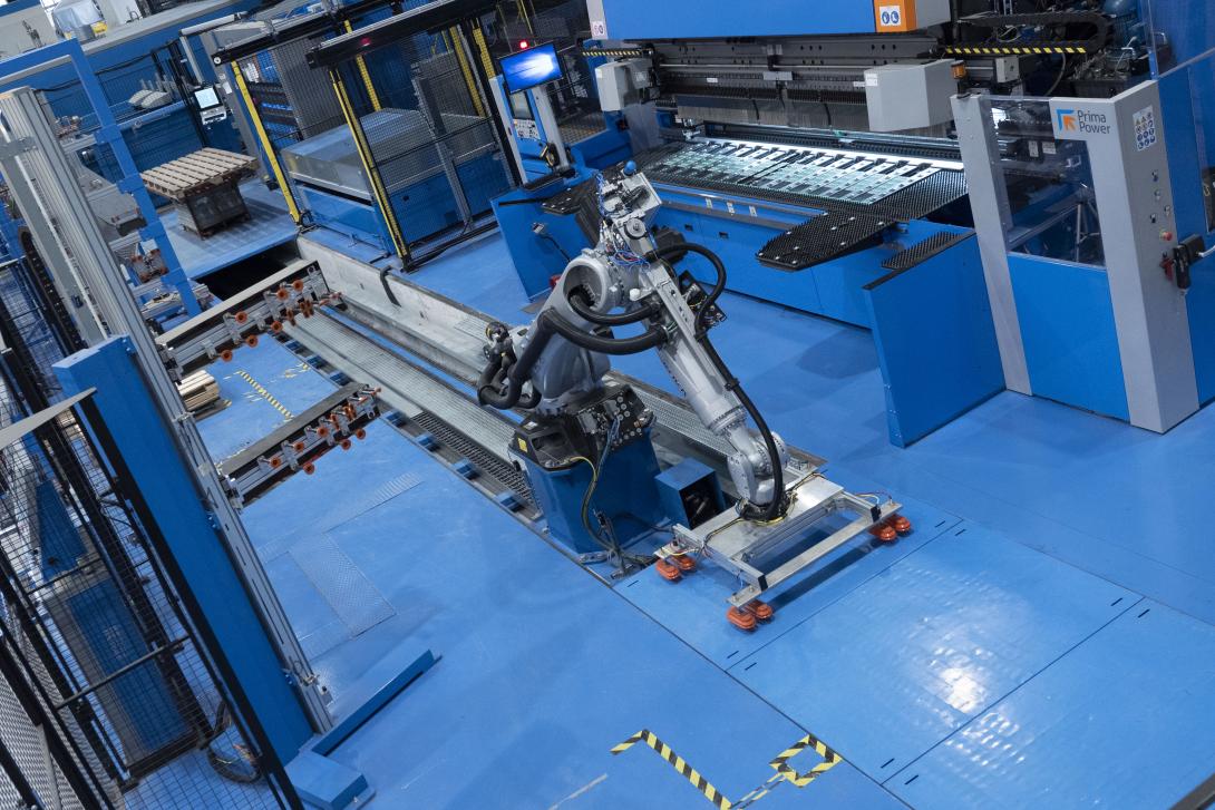 „Od roku 1998 je naší stálou volbou Prima Power,“ vysvětluje opět pan Diego Pozzato. „Byli jsme průkopníky v používání jejich děrovacího stroje F5, který jsme v roce 2011 nahradili současným strojem SGe6, k němuž jsme v roce 2017 přidali automatický skladovací systém Night Train a v roce 2019 integrovaný robotický ohýbací systém. V současné době vyhodnocujeme zařazení laserového řezacího systému do našeho flexibilního výrobního systému, který by nejlépe doplnil naše potřeby v oblasti zpracování plechů, přestože již máme kontinuální, optimalizovaný a efektivní pracovní postup navržený a vyvinutý v součinnosti se společností Prima Power. Konkrétním příkladem je robotická ohýbací buňka, kterou jsme nainstalovali na začátku roku 2020. Na začátku jsme uvažovali o koupi automatického obkládacího stroje, ale během fáze vyhodnocování jsme zjistili, že to není ideální řešení pro naši práci. Proto jsme se rozhodli pro toto řešení, které nejlépe kombinuje potenciál účinného servoelektrického ohýbacího centra a moderního servoelektrického ohraňovacího lisu. Díky kombinaci obou technologií můžeme všechny procesy provádět v co nejkratším čase a co nejefektivněji.“