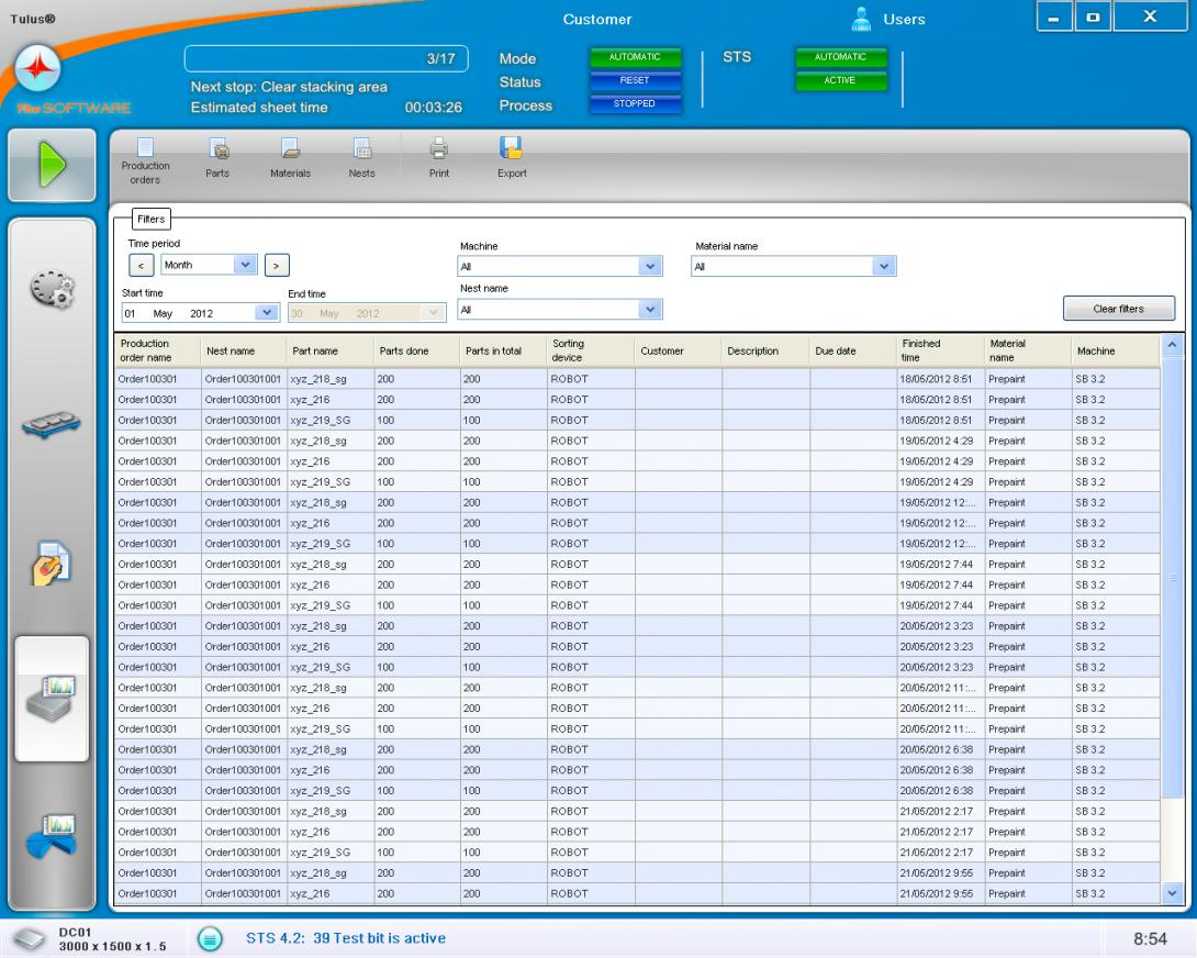 Řízení stohování Tulus® automaticky vypočítává pozice dílů na paletách, boxy pro díly a časy, ve kterých musí být díly odebrány ze stohovacích ploch, a to buď ručně, nebo automaticky do skladu.