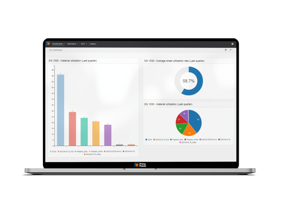 Online-Kundenselbstbedienungsportal, das den Nutzern detaillierte Informationen über ihre Produktion und Maschinen liefert und ihnen wichtige Vorteile, eine Verbesserung des Qualitäts- und Ressourcenmanagements, eine Verringerung der Ausfallzeiten und unternehmerisches Denken und Handeln ermöglicht. Erfahren Sie mehr über Prima Power's Software für Produktionsberichte und -überwachung.