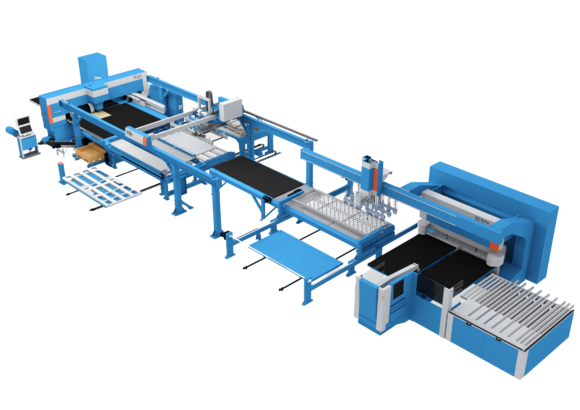 Führende technologische Blechlagerlösung in Kombination mit automatisierten flexiblen Fertigungssystemen