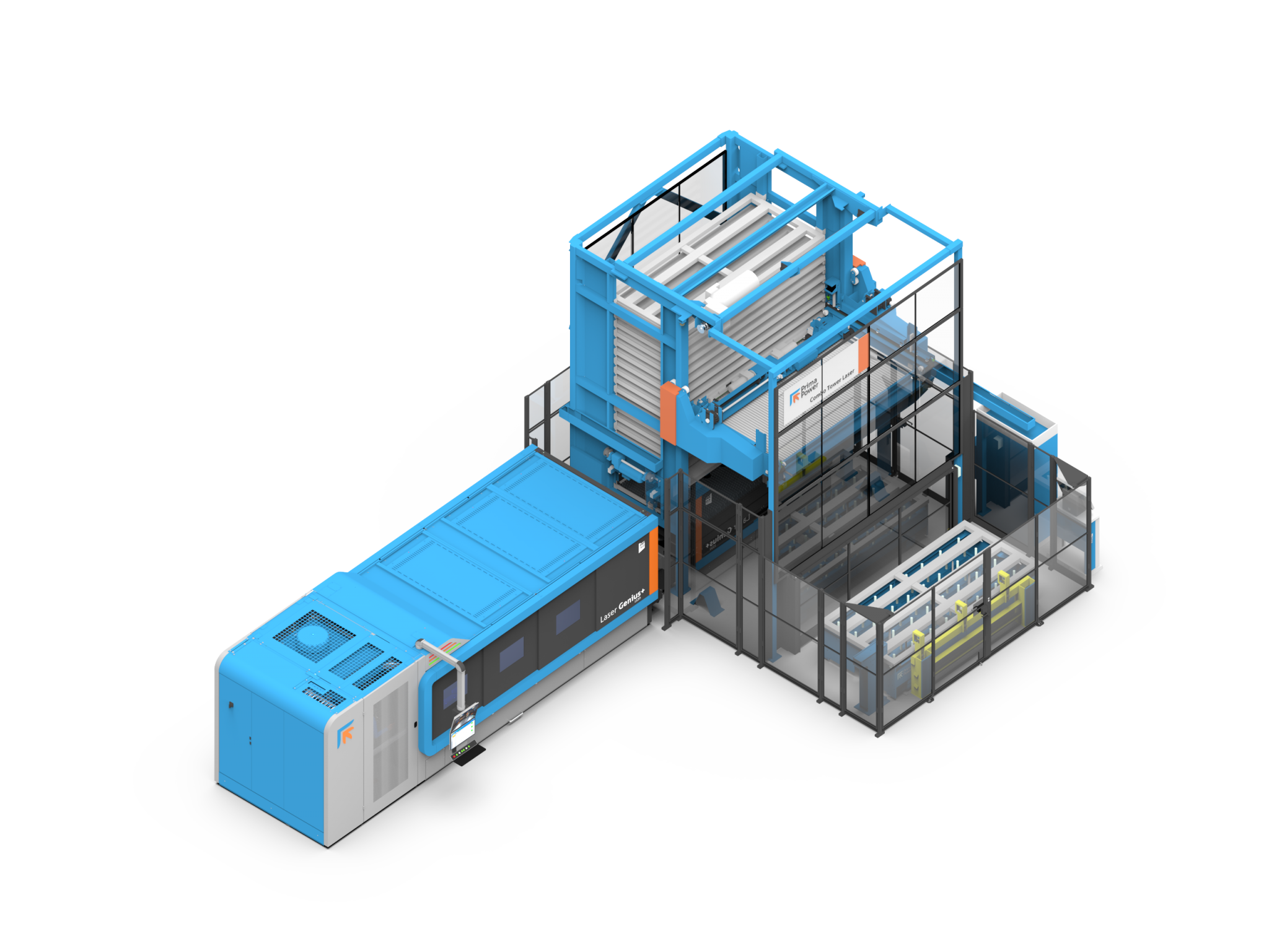 Combo Tower Laser is a flexible storage system with integrated loading and unloading features for 2D lasers.