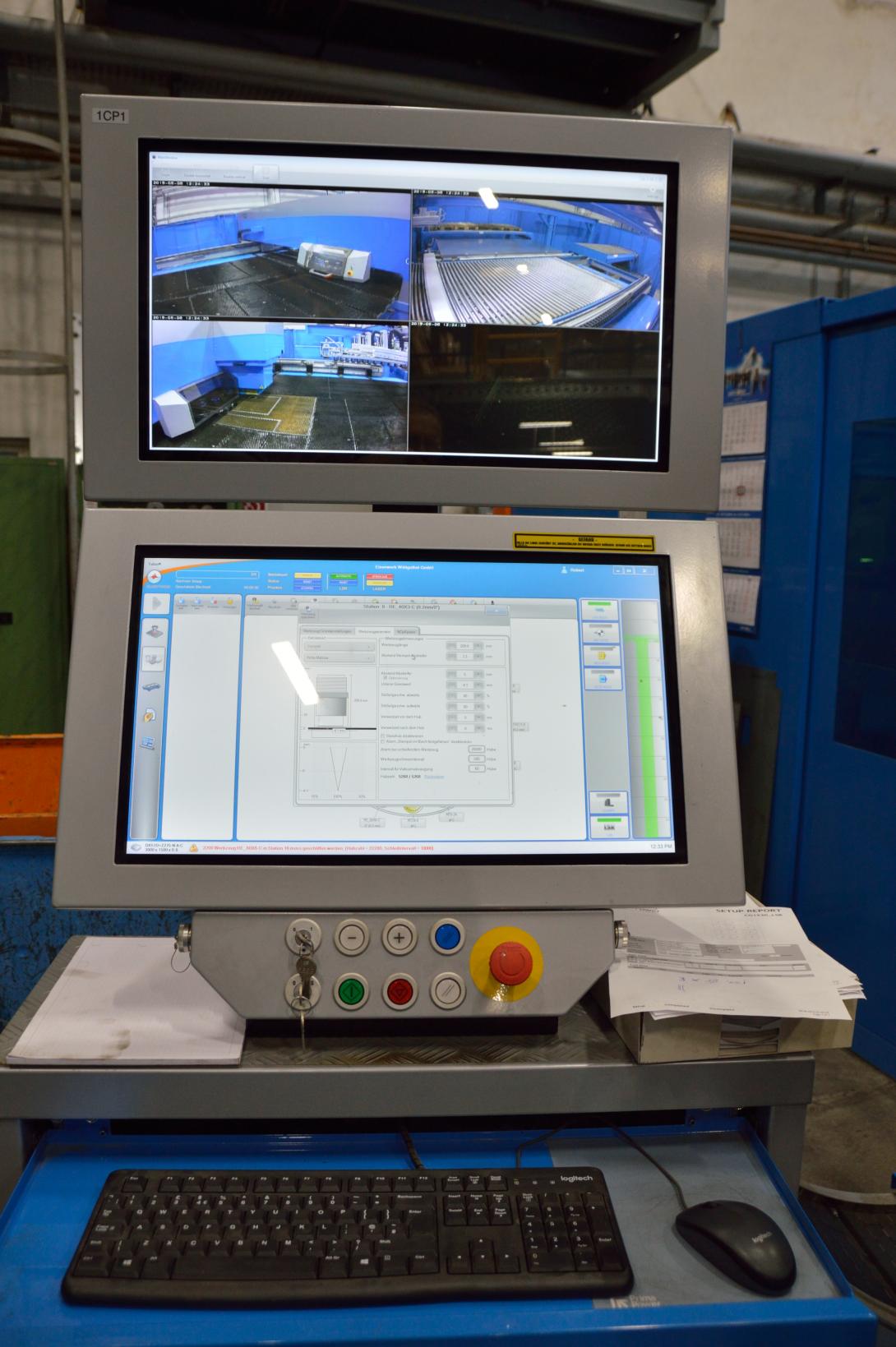 El sistema Combi Genius se maneja a través de un panel de control con pantalla táctil. El operador puede comprobar tanto los ajustes de la máquina como las listas de trabajos. Cuatro cámaras controlan el interior del sistema y monitorean el proceso de la máquina. El operador tiene una vista clara de la torreta de herramientas con todas las herramientas utilizadas, así como de los ajustes del cabezal del láser. También está disponible un sistema de manejo de herramientas que, por ejemplo, registra el número de golpes efectuados y muestra las instrucciones de mantenimiento pertinentes.