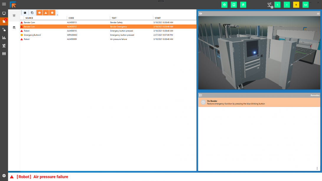 Aplicación basada en Internet para operadores de máquinas que ofrece información transparente sobre el estado de la línea de manufactura actual.