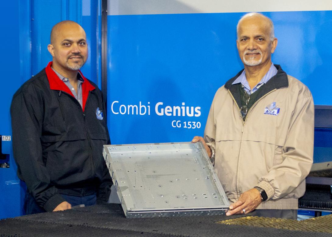 Viimeisimpänä hankintanaan A & J osti Prima Power Combi Geniusin vuonna 2019. Moderni Combi-kone käyttää numeerisesti ohjattavia sähköservokäyttöisiä akseleita, ja se mahdollistaa erinomaisen energiatehokkuuden, vähäisen huoltotarpeen ja nopean toimintakyvyn. Sen tuottavuus perustuu suureen työkalukapasiteettiin, kattavaan käytettävien työkalujen valikoimaan sekä helppoon ja nopeaan asetusten vaihtoon. Aito kuitulaser on combi-koneen paras lasertehon lähde ja erittäin tehokas. Sen korkein käyttöaste sopii kätevästi alle 8 mm paksuille materiaaleille. Muovaus ja muut aputyövaiheet sekä helppokäyttöisyys ovat lisätekijöitä, jotka alentavat valmistuskustannuksia komponenttia kohden, mikä tekee Combi Genius -koneesta tuottavan ja kilpailukykyisen valmistusratkaisun.