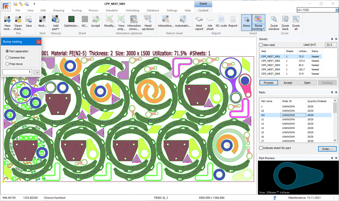 NC Express e3 -ohjelmiston mukana on tehokas nestausmoduuli vapaamuotoisia ja leikattuja kappaleita varten.