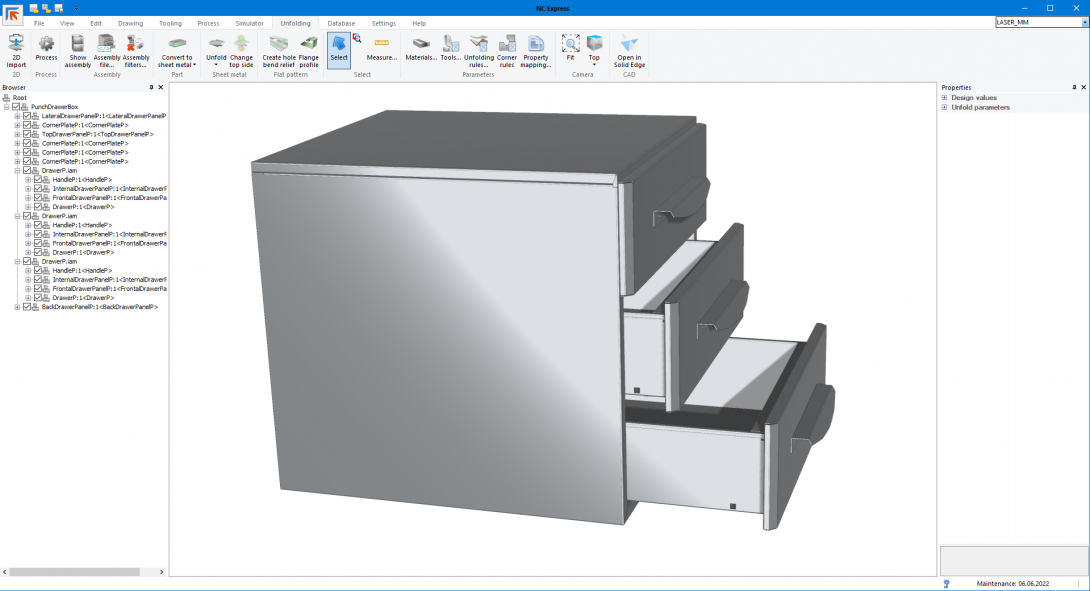 Laaja alkuperäisten 3D-tiedoston tuontitoimintojen valikoima luo helposti luettavia 3D-malleja eri CAD-ohjelmista. Tarkat taittelemattomat tasokuviot luodaan joko kokoonpanosta tai yksittäisestä kappalemallista. Tasokuvio sisältää kaikki tarvittavat tiedot joko lävistimellä, laserkoneella tai kulmaleikkauslaitteella tehtävää jatkokäsittelyä varten.