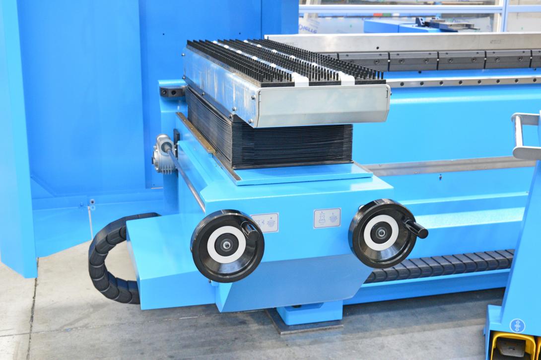 Pour éviter et compenser toute déviation du cadre, une table à triple fond est fournie. Cette solution permet d'installer le couronnement adaptatif avec l'avantage de mesurer la déflexion du vérin et de la compenser en temps réel, afin de gérer la variabilité du matériau.