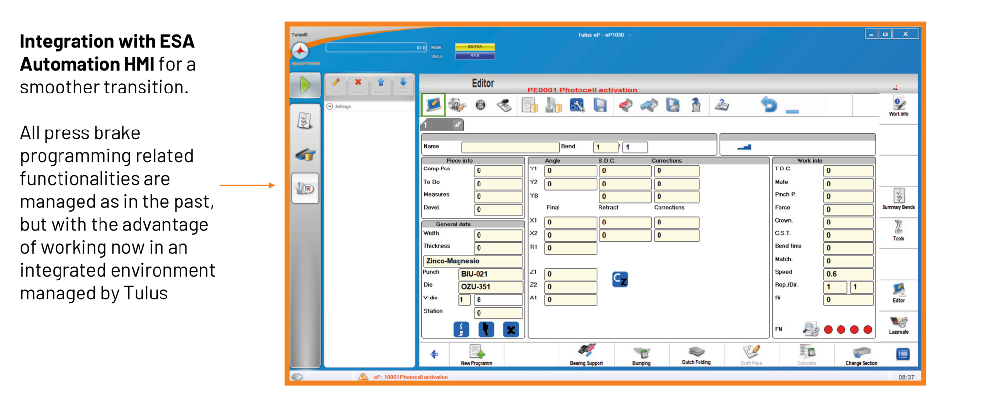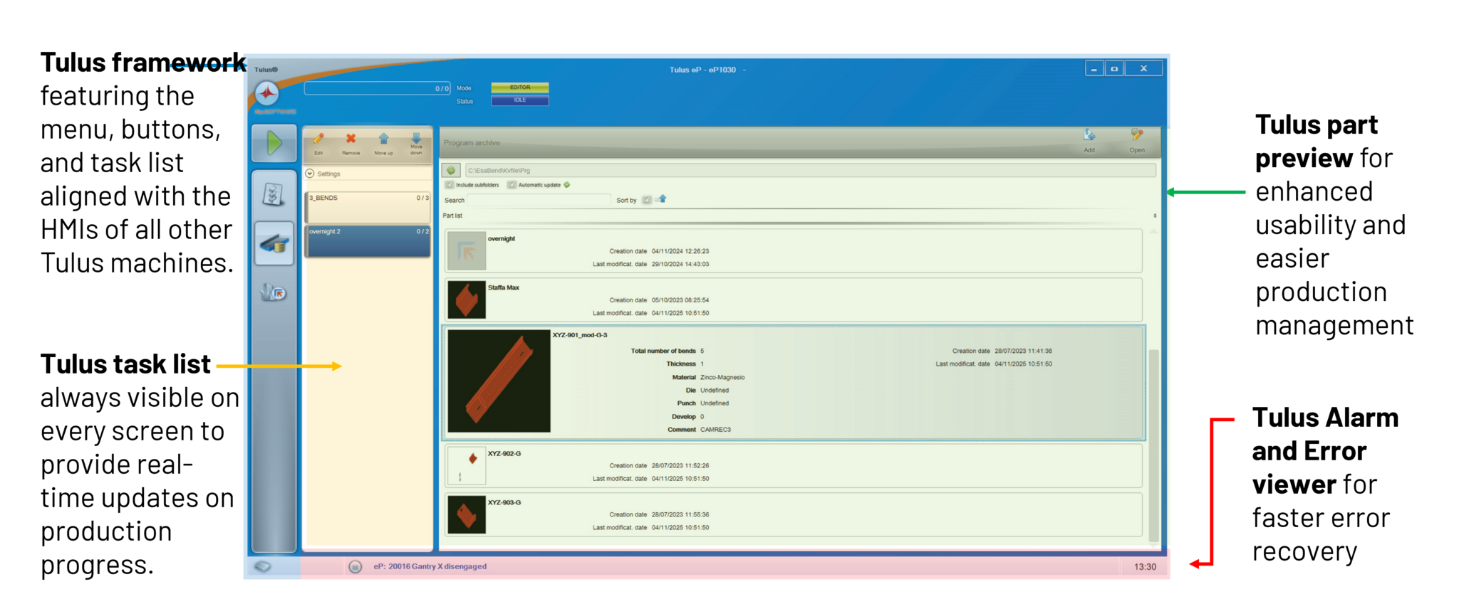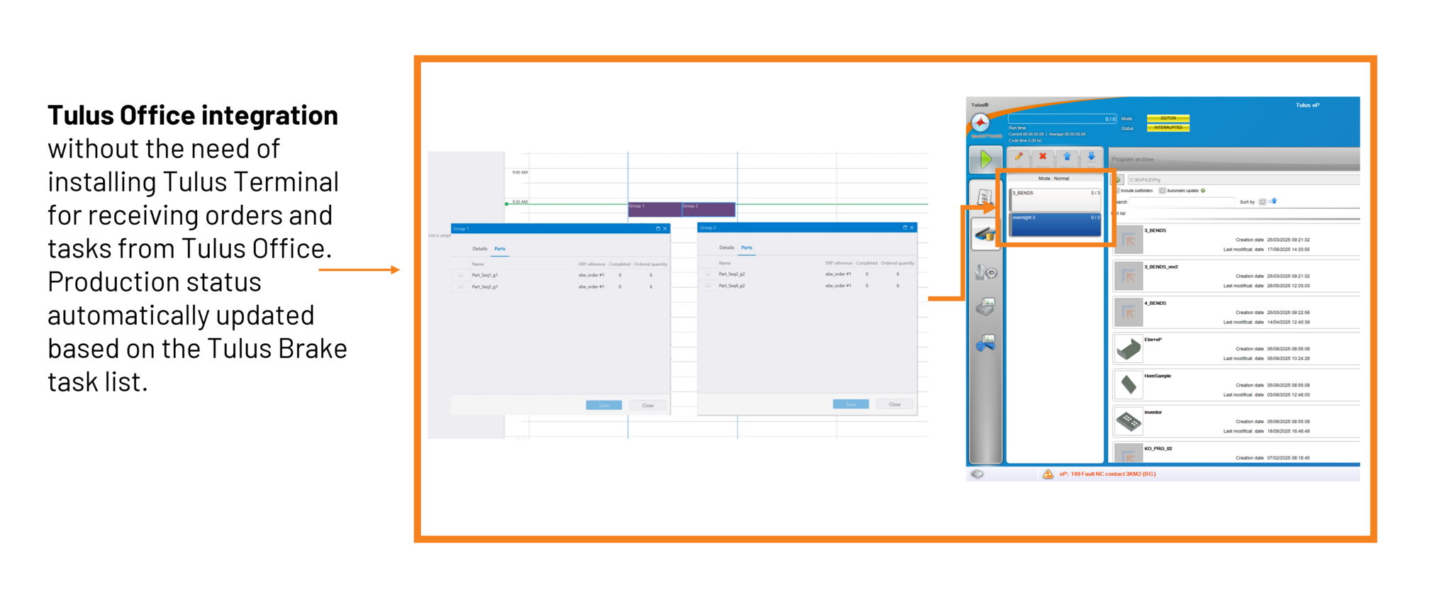 Tulus Brake è l’HMI Tulus per le presse piegatrici. Questa interfaccia innovativa per le presse piegatrici eP Series 7 è completamente integrata nell’attuale ecosistema HMI Tulus e si collega in modo trasparente a Tulus Office senza richiedere alcun software aggiuntivo.