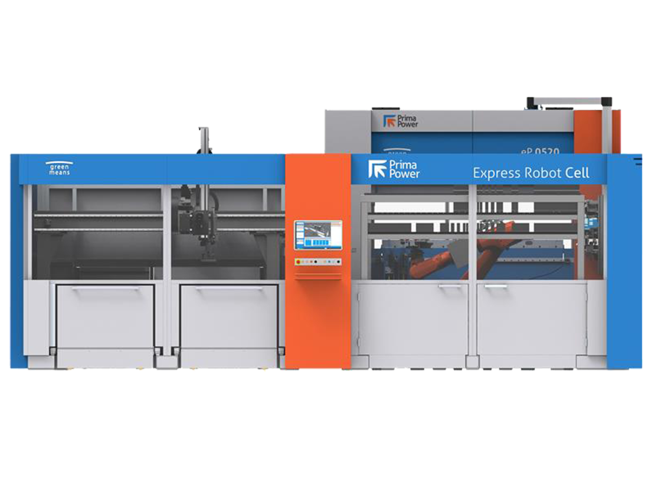 The eco-efficient cell with panel bender, press brake and industrial robot.