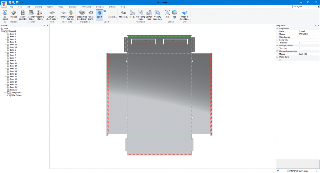 Een uitgebreide reeks native 3D-file importeurs maakt het gemakkelijk 3D-modellen uit verschillende CAD programma’s te lezen. Nauwkeurige opengevouwen vlakke patronen worden gemaakt van een assemblage of van een enkel onderdeelmodel. Het vlakke patroon bevat alle nodige informatie voor verdere bewerking op een pons-, laser- of schaarmachine.