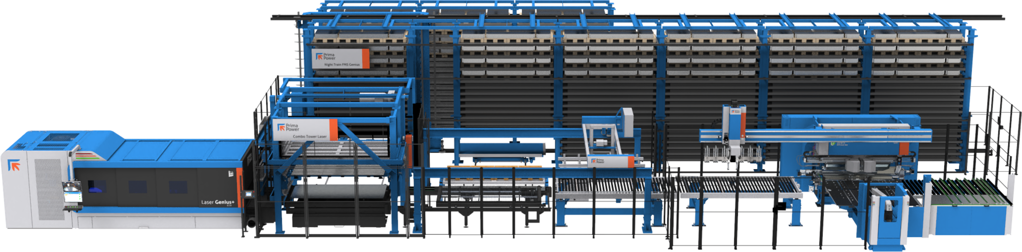 For the bending part of the line, you can choose either a servo-electric high-accuracy panel bender or a press brake, which is excellent with thicker materials and complex shapes. Prima Power panel benders are versatile and flexible and can be customized with a range of options.