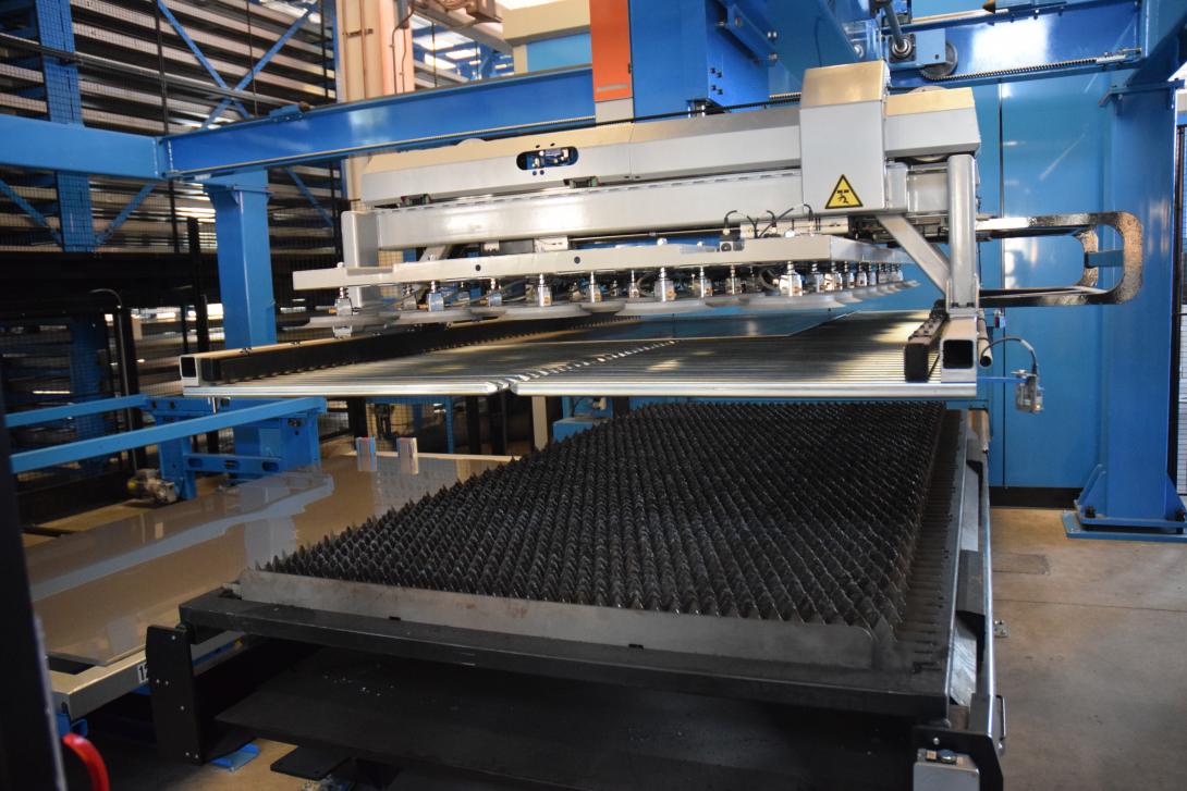 Today it is processed and shaped by a productive and efficient system in which each of the operational phases, from laser cutting, punching, bending, panelling, right up to its automatic storage (the heart of the process) are taken care of by Prima Power.