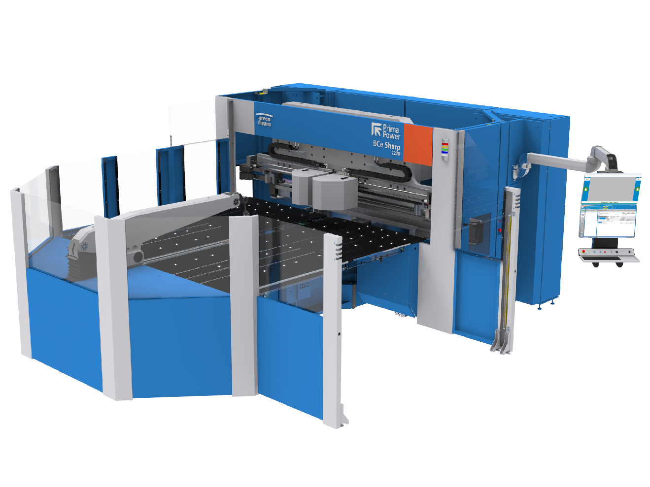 The eco-efficient cell with panel bender, press brake and industrial robot.