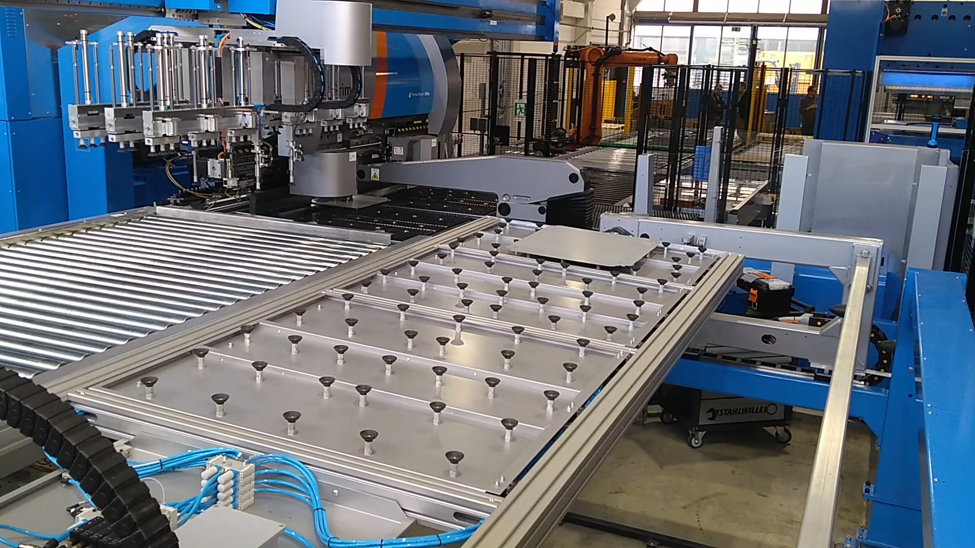 由折弯中心,折弯机和工业机器人组成的绿色环保的加工单元。